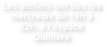 Mais nous nous retrouvons quand même tous les mercredis soir à l’ALEP (Espace Quinière) pour notre atelier, mine de nombreux exercices et d’impros, qui nous permet de nous exercer pour ensuite jouer devant vous, Public.