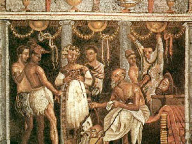 L'improvisation théâtrale a sans doute toujours existé. Le premier théâtre improvisé semble être la comédie Atellane (image ci-contre) qui se jouait à Rome au III ème siècle av. J.-C ; En France, c'est au XVI ème siècle que l'improvisation devient populaire avec la Commedia dell'arte.